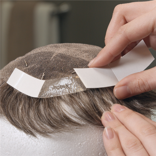 yapıştırılır. Protez saçın üzerinde bant yapıştırmak için ayrılan skin